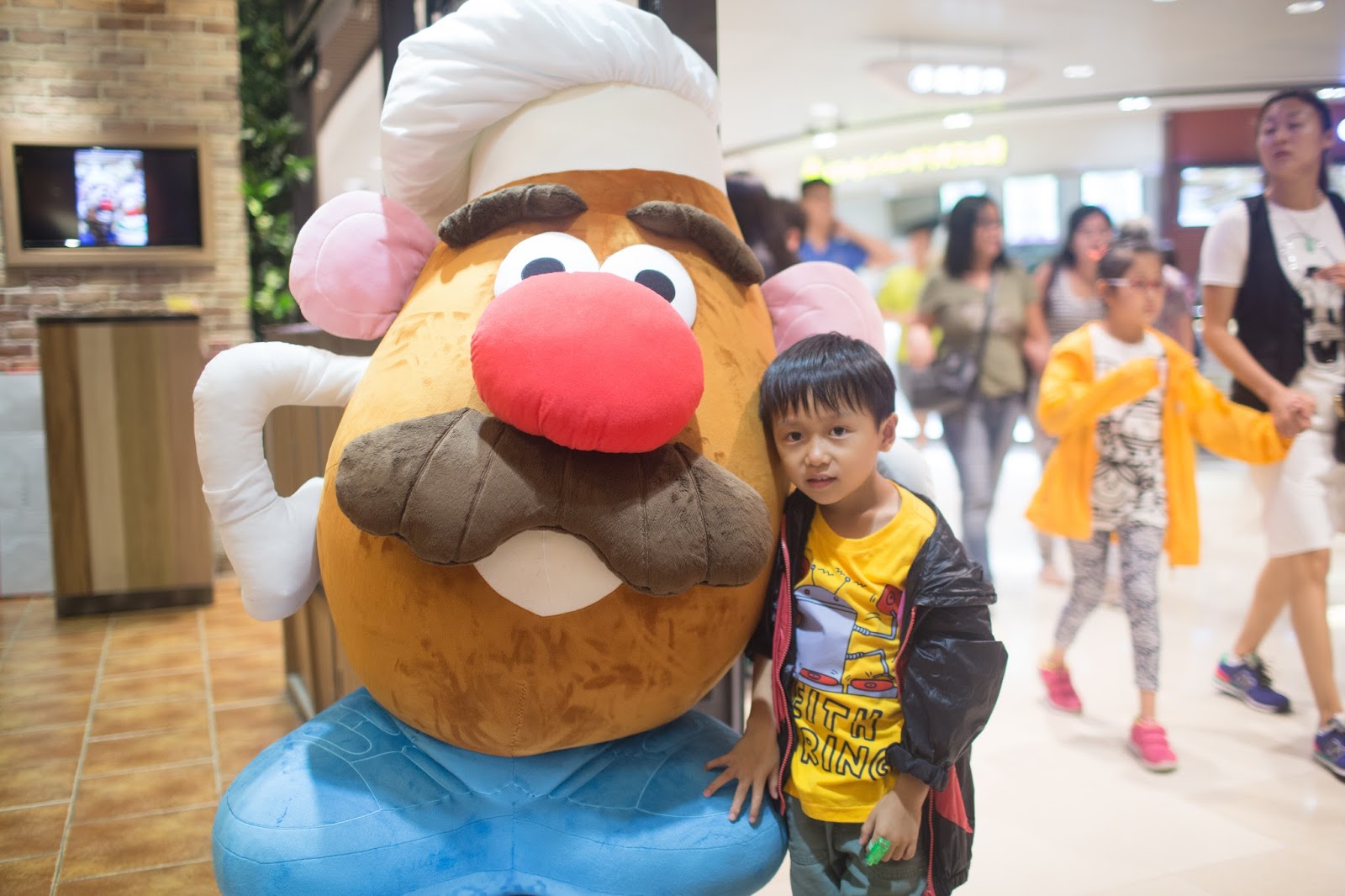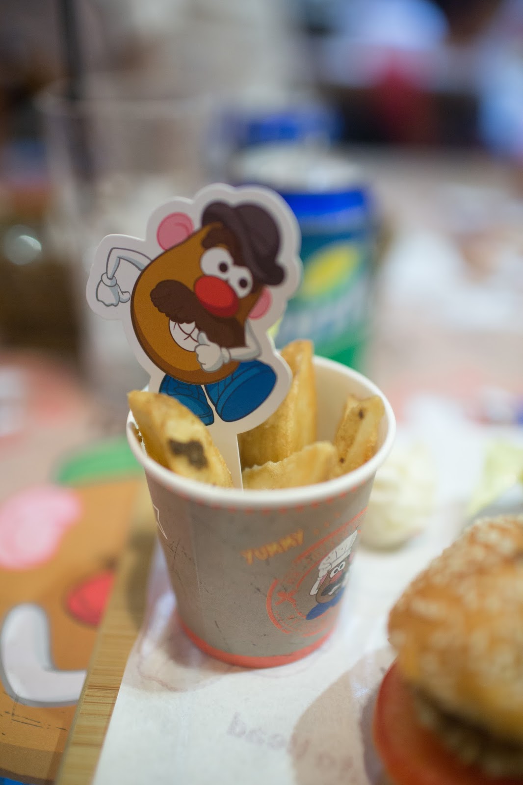 Mr. Potato Head Café 簡介: 日式咖哩專門店Izumi Curry最近和孩之寶crossover,分別在屯門及尖沙嘴開設全球首兩間薯蛋頭先生主題Café,Mr. Potato Head Café。無論是餐廳裝潢、食物、餐枱紙或杯墊設計,全部也是用上cute爆的薯蛋頭嘜頭,屯門店的入口處還有個約1.5米高的大廚look薯蛋頭模型