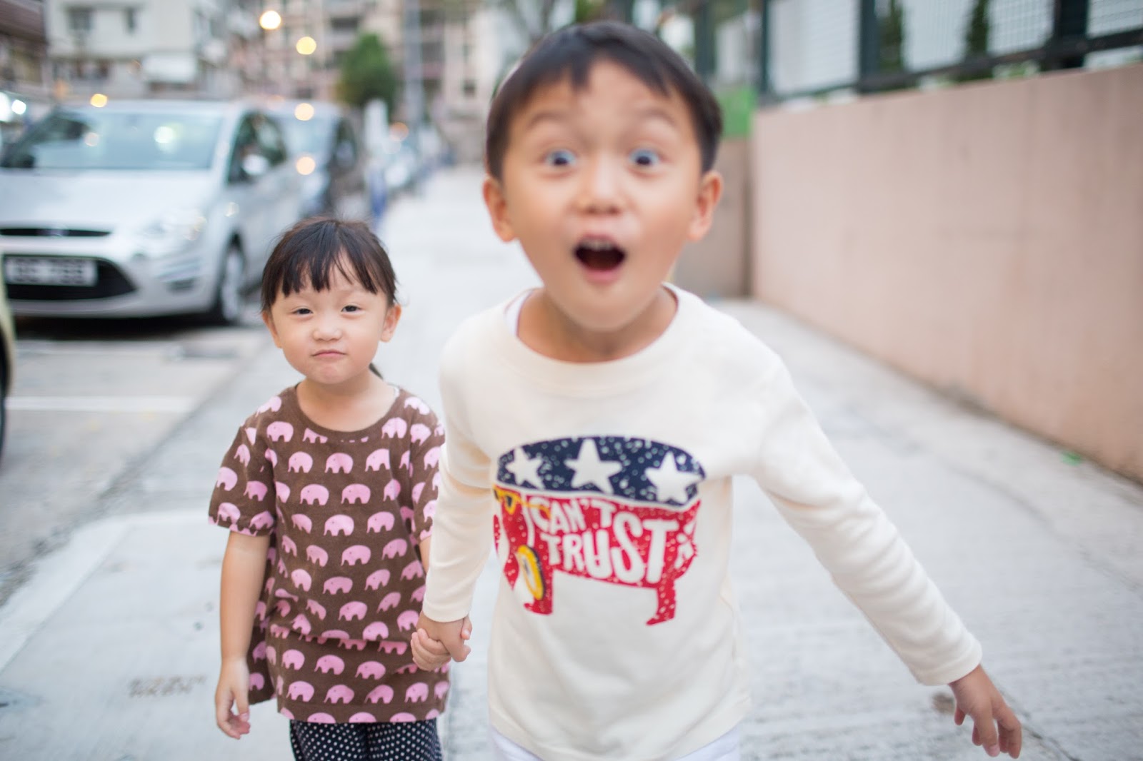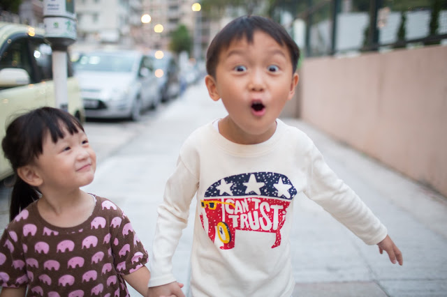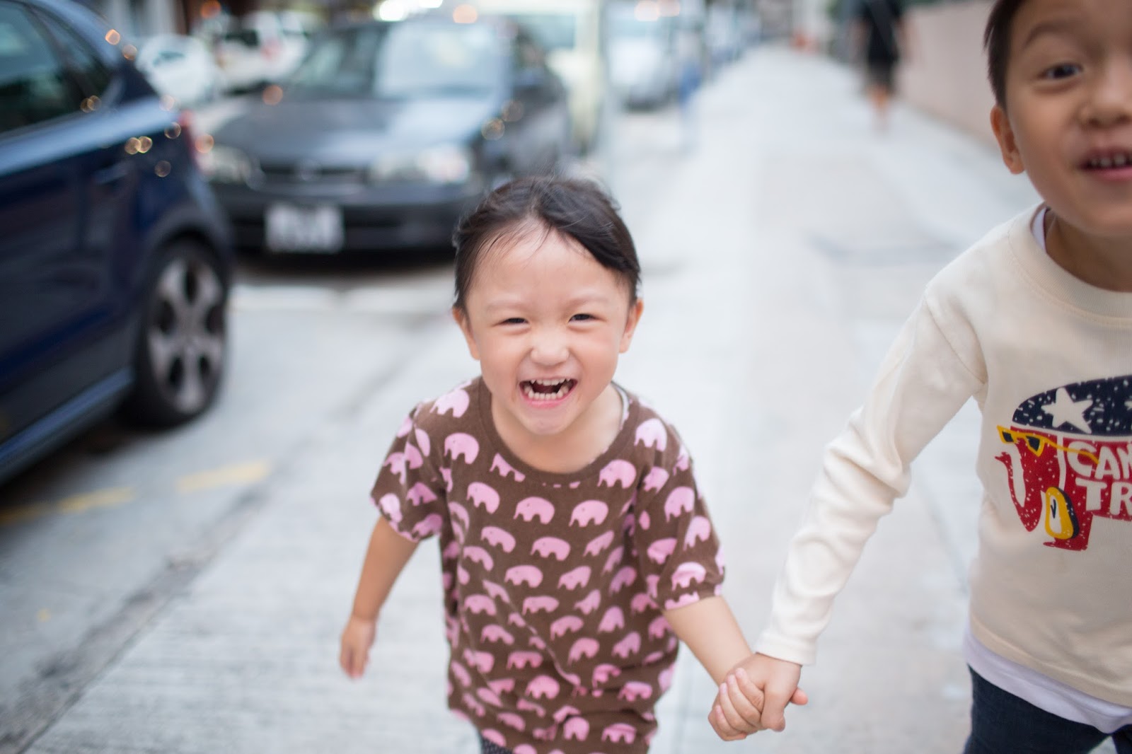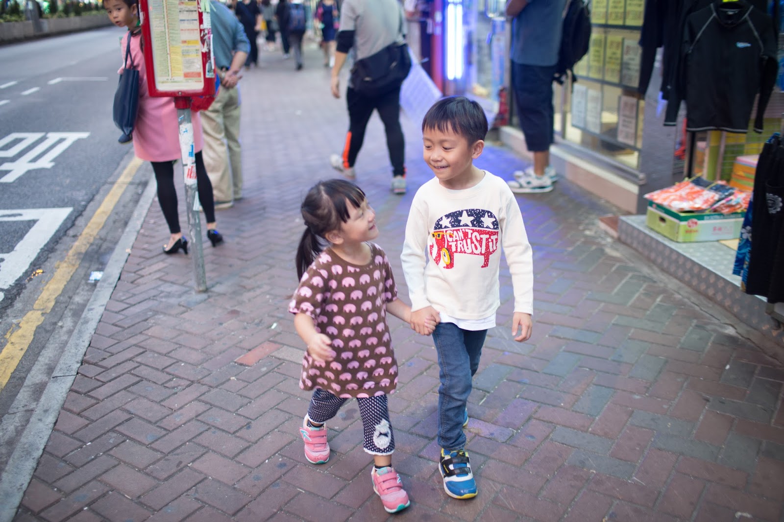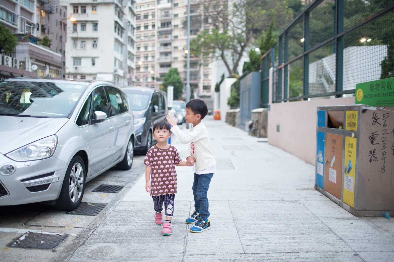 唔知做咩事,哥哥一出門口就一路拖住呀妹隻手