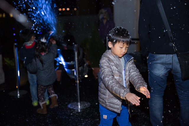 我哋走到去射燈前再影,終於若隱若現咁睇到少少飄雪啦