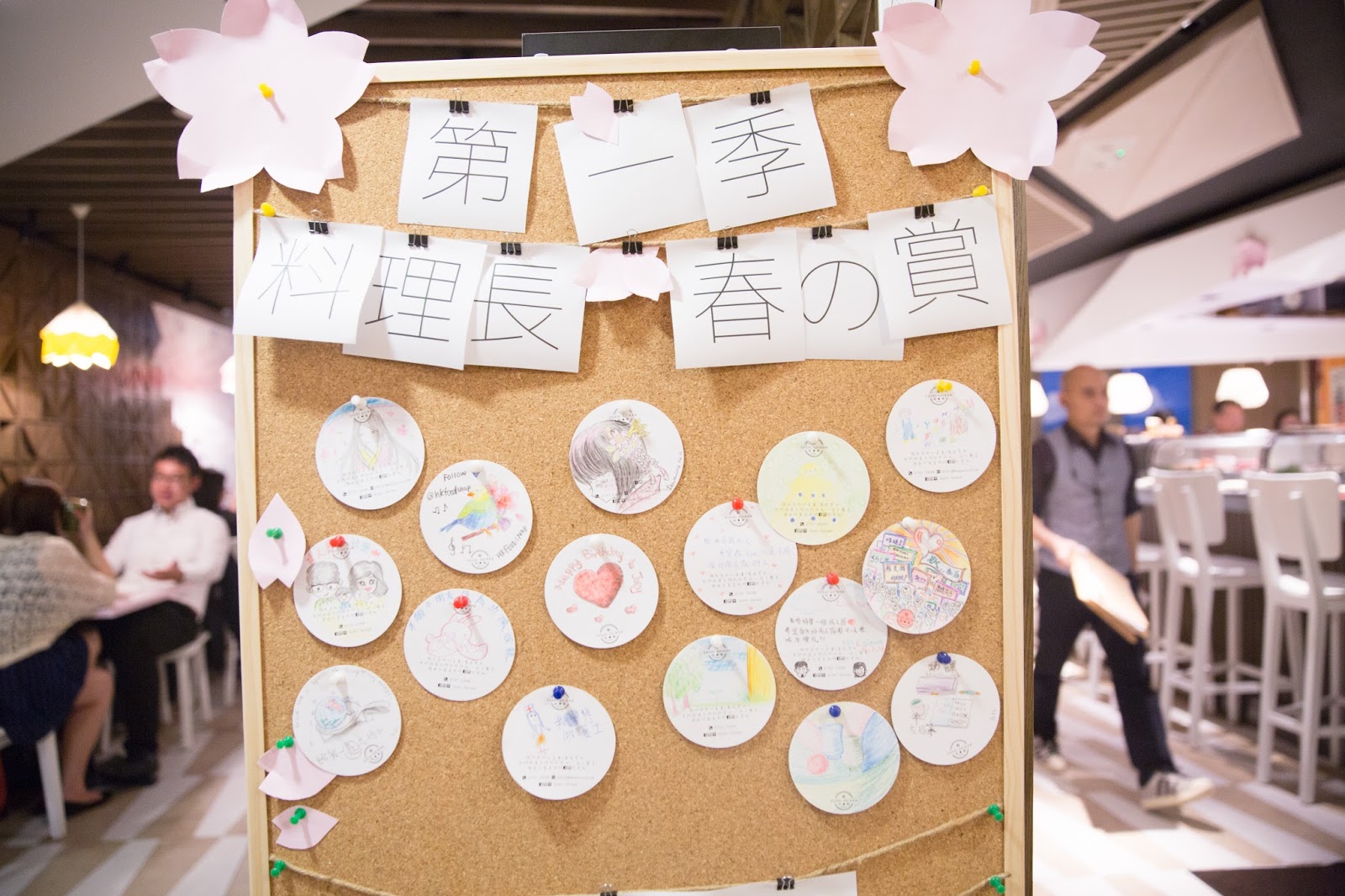 呢度周圍環境都由好多摺紙做成,就喺門口已經見到有塊版釘住好多客人畫嘅圖畫