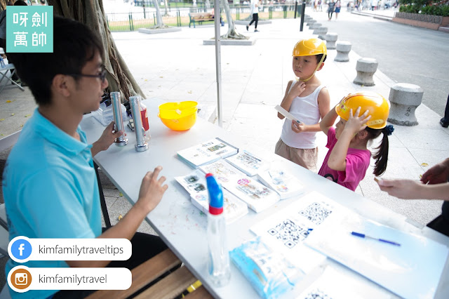 小朋友要戴住安全帽同埋手電筒, 入去黑媽媽既礦洞裡面去搵QR code, 再用電話解密將相片Screen Capture落嚟!