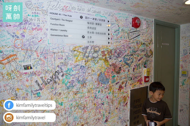 Recpetion附近的牆身係可以俾大家喺上面簽名, 大家簽到花哂卻變成一幅幾靚既牆身