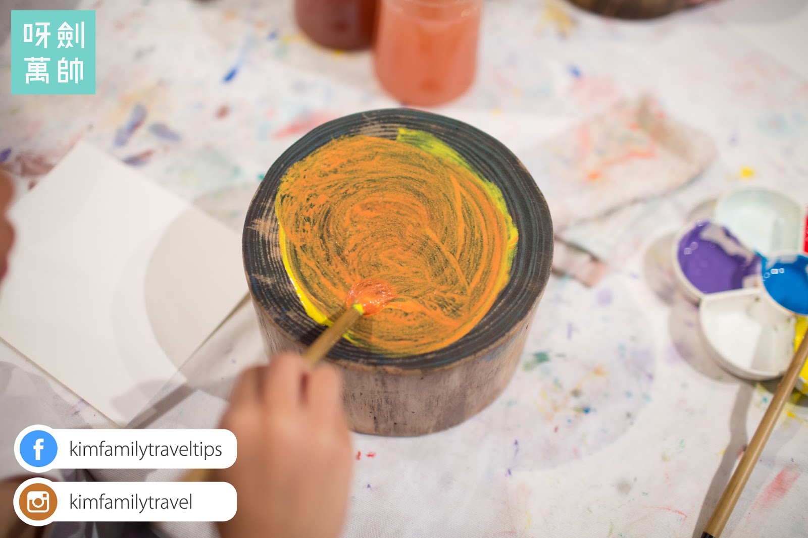 佢哋拎起畫筆,揀自己鍾意嘅顏色喺樹輪上油上唔同嘅Pattern