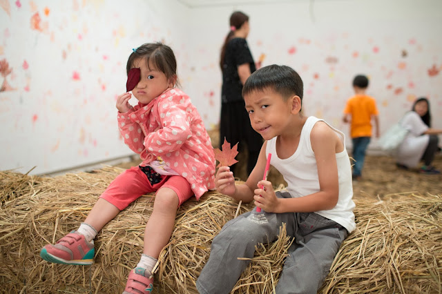 哥哥第一個一支箭咁跑咗入去畫,對於小朋友嚟講未必認識很多或明白這個展覽的背後意義