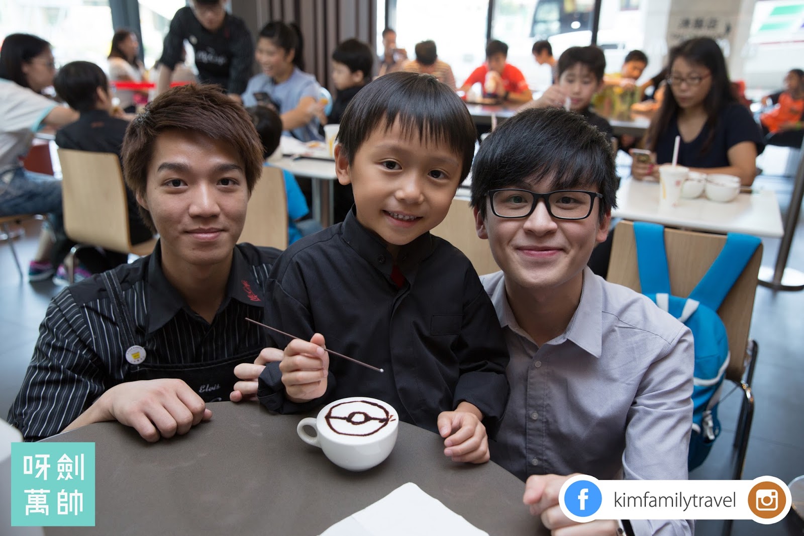 番到嚟McCafe哥哥補番同Hysan唧唧朱古力漿畫圖案喺泡沫鮮奶上,人哋幾個哥哥姐姐問佢想畫咩,佢衝口而出話要畫比卡超,即刻全場靜哂!然後McCafe哥哥話不如話精靈球啦,精靈球裡面都有比卡超㗎!跟住極不願意扁哂咀咁接受,笑到旁邊嘅姐姐肚痛
