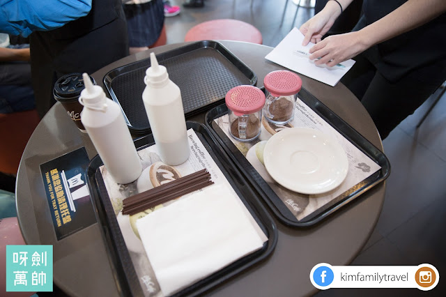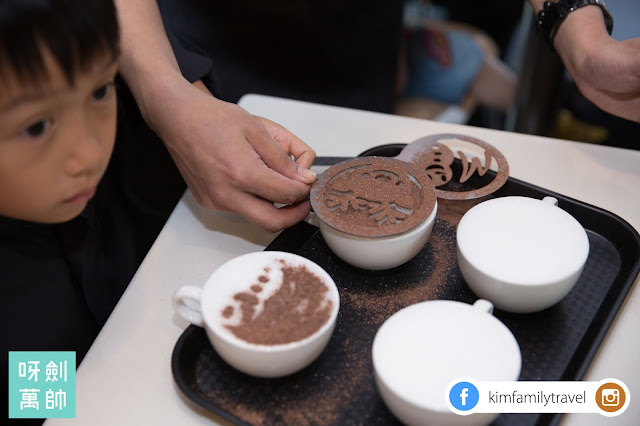 McCafe哥哥先教我哋同個模隔開朱古力粉,砌出唔同造型一杯獨特嘅朱古力泡沫鮮奶!