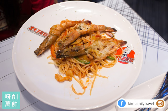 講咗咁耐環境,終於上菜啦!呢個鮮茄大蝦意粉,賣相有點...唔掂,食物質素都平平...