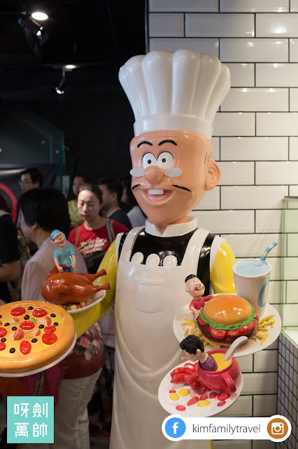 上到去已經大排長龍,新店開張難免有呢種情況,在店外都有幾個專櫃放著老夫子嘅精品擺設,同埋再有幾個唔同嘅廚師經理等角色造型
