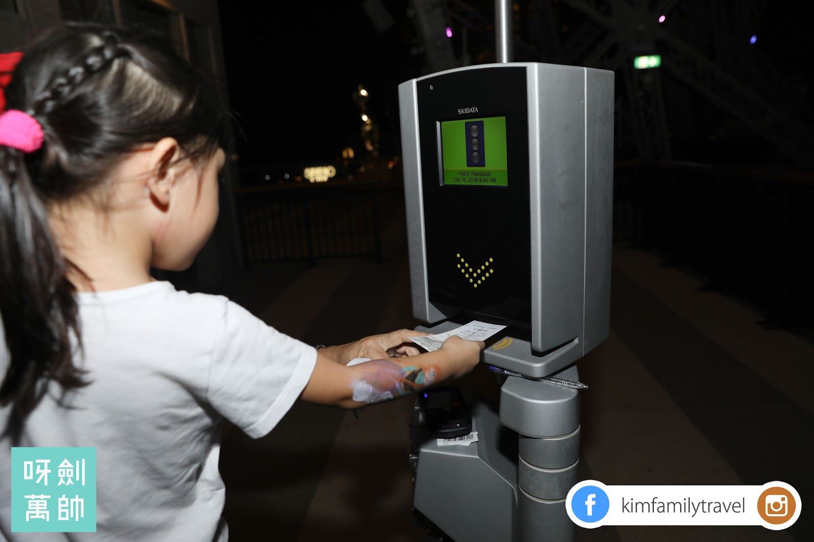 然後去到塔底有另一個閘口,就係通往最高塔頂37樓觀景台,職員抱起芊芊將飛插入去入場等Lift
