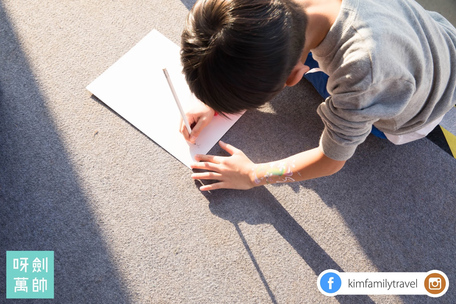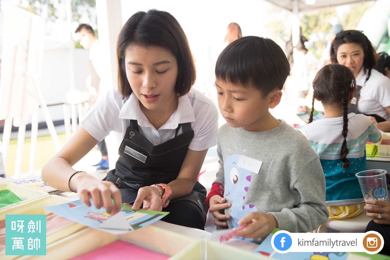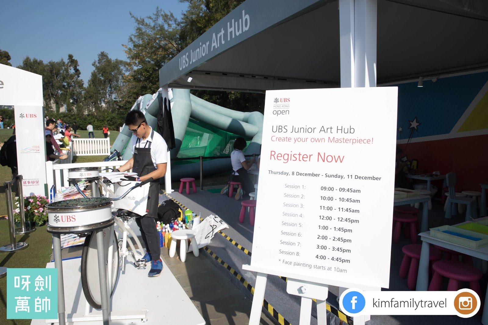 然後我哋嚟到Junior Art Hub,今年多咗好多嘢玩,唔單止沙畫DIY同彩繪,今次仲有部單車畫玩,不過實在太多人參與,所以我哋先登記,到4點再番過嚟玩!