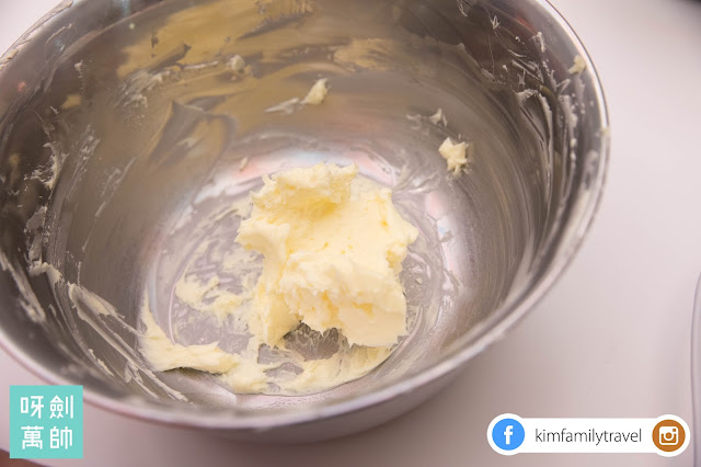 首先我哋一開始就用打蛋器將牛油打成一團