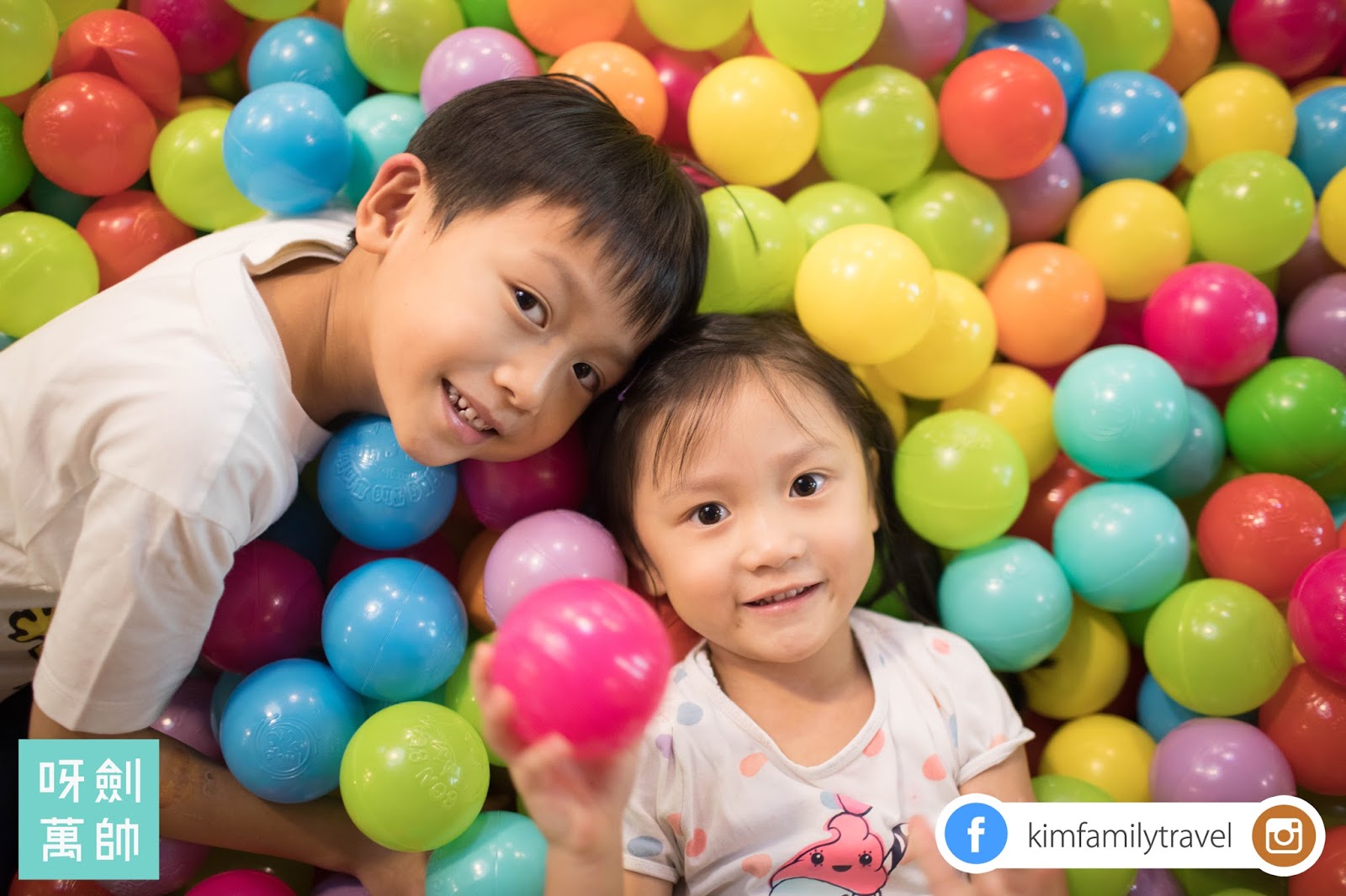 旁邊有個迷你波波池, 啱哂BB玩, 但係哥哥唔理咁多, 見冇人玩緊都跳落去沖個靚涼先