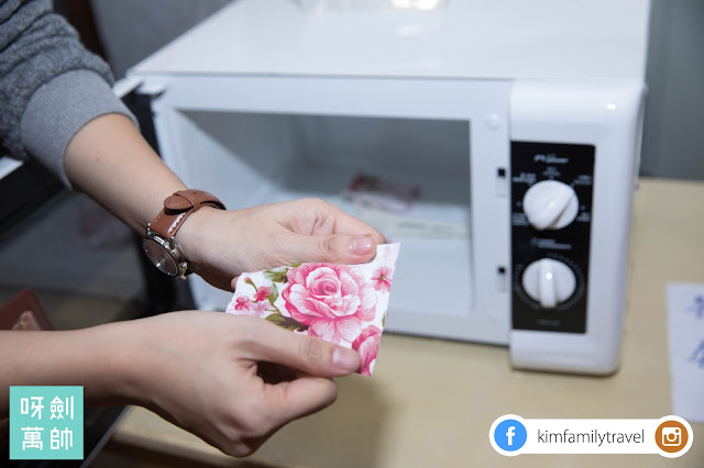 將白米倒入預備好嘅布袋,然後放入去微波爐度叮一叮