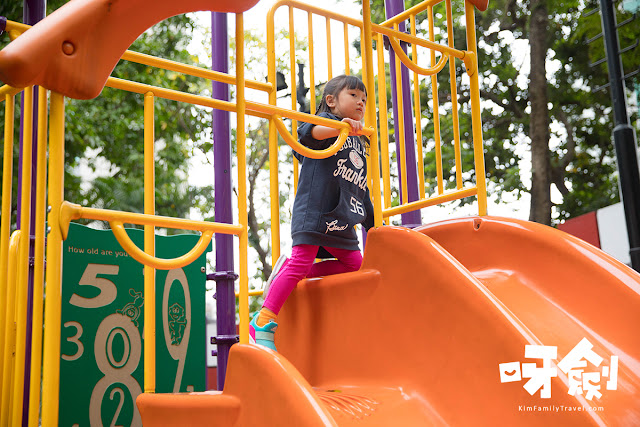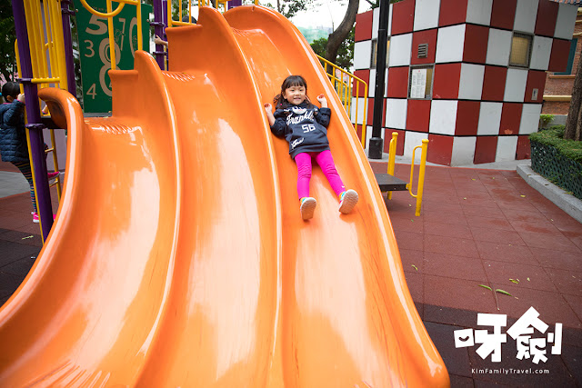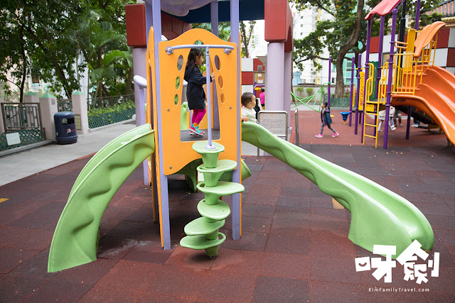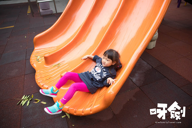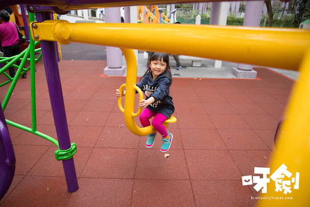 右邊有一般的兒童遊樂場,在設計上真的模仿一個小城堡,而左邊則有4個韆鞦、小涼亭及一個草地休憩處