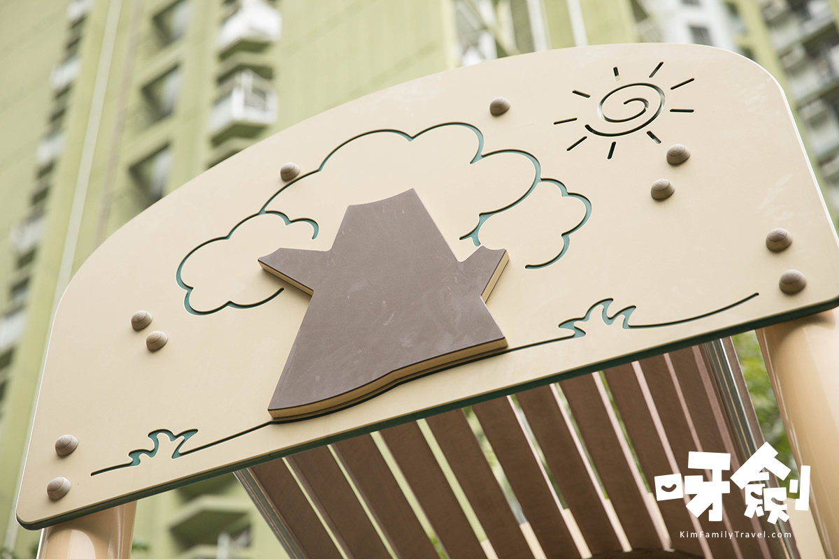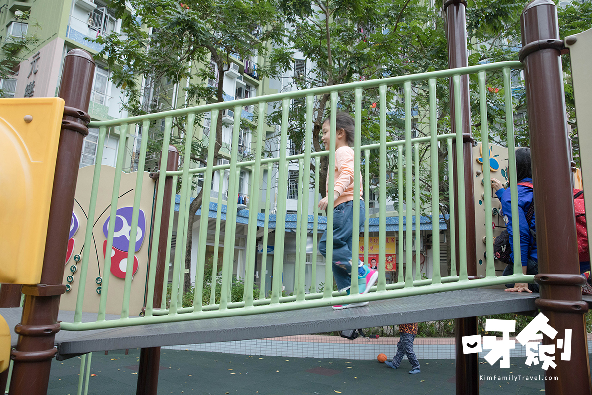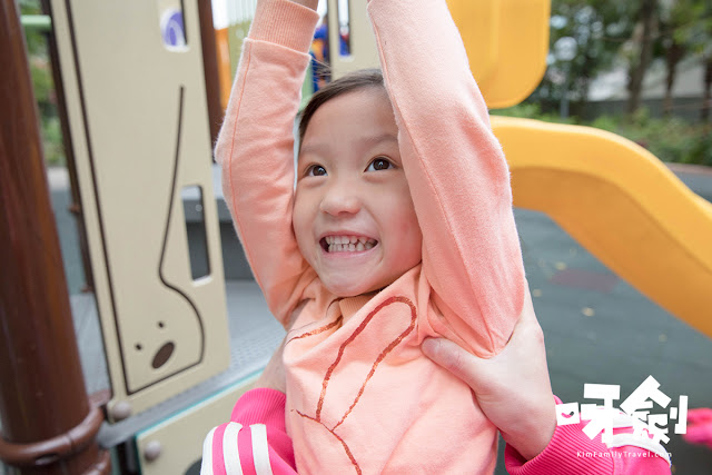 第一個主題遊樂場係以森林為題,設施上都特別多係攀爬式,好似爬山石及Monkey Bar等。整個設計都以啡及綠色為主,模擬樹木的特色!