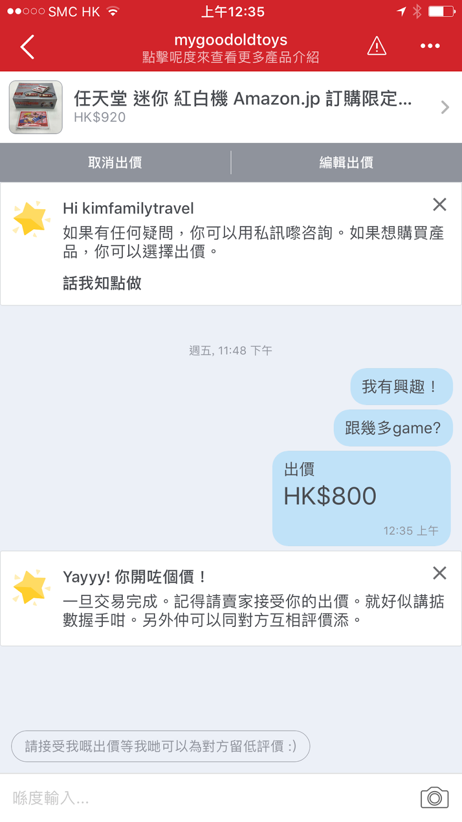 賣家出價 $350,我就試吓膽粗粗叫價 $280,居然話咁快賣家即刻OK! 我自己都好突然,心諗唔知係咪A貨