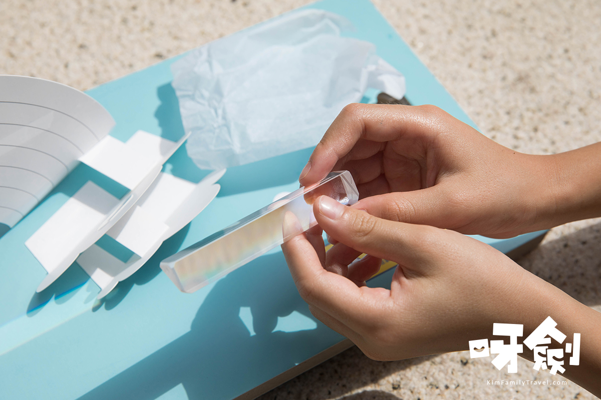 哥哥覺得超級新奇,一直轉動三稜鏡希望可以將彩虹折射到咭紙上