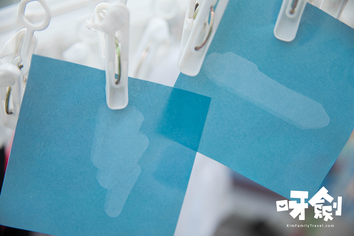 不過好快深藍色印記就會褪去,因為仲有一個步驟要做! 原來要再將轉印紙放到水裡去沖,印記就可以明顯的呈現出嚟