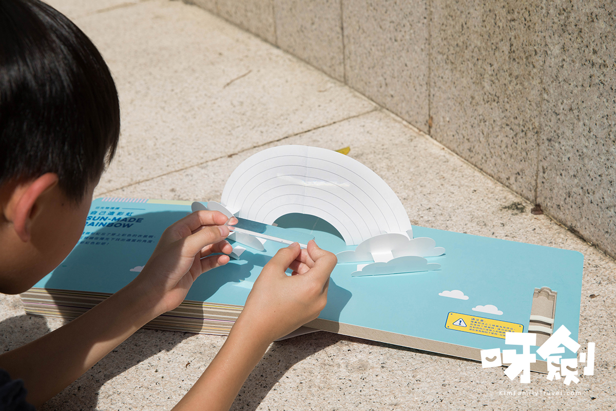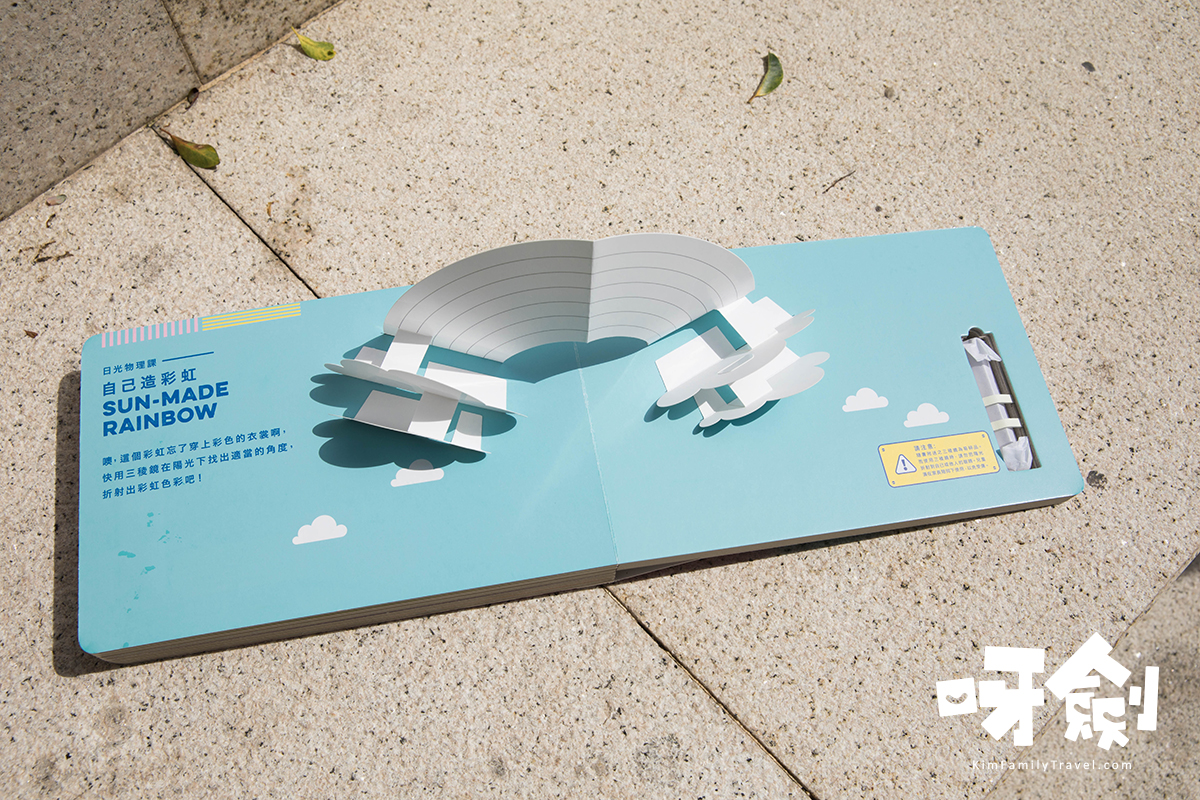 仲有「日光物理課」,係我最鍾意的一課,隨書附送一三稜鏡,利用太陽折射到書POPUP的彩虹上