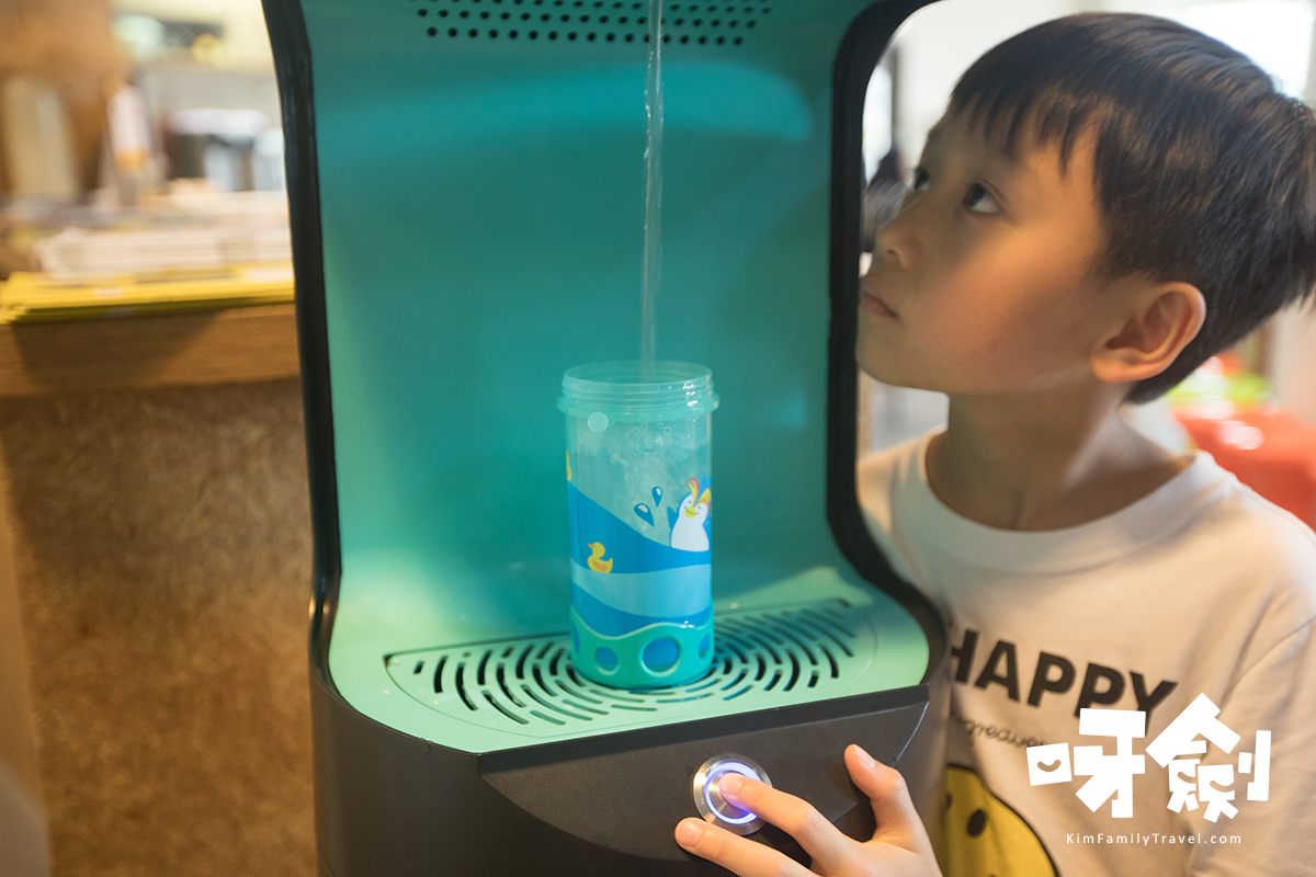 智能水機上有一按鈕,每次按下系統計算就會顯示節省多一個膠樽(當然用按的次數來計算並不完全準確)