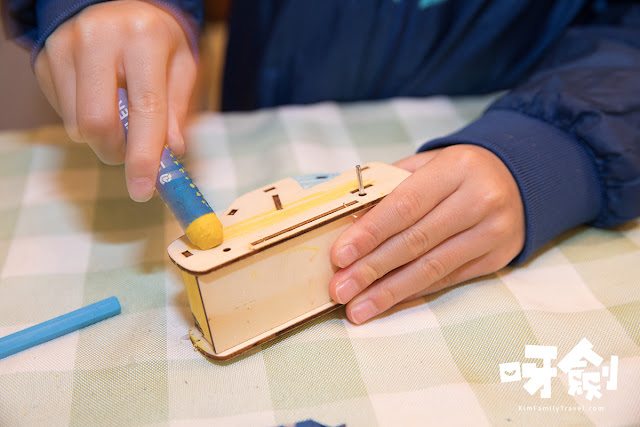 原來架車仔內安裝咗個小摩打,可以手拉車後條繩,木製車就可以自己向前衝
