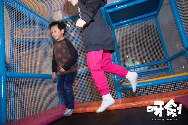 一落到嚟遠遠一望(其實在房間望落嚟已經見到),嘩!正呀,芊芊最喜愛嘅充氣彈床,仲要幾乎包場!