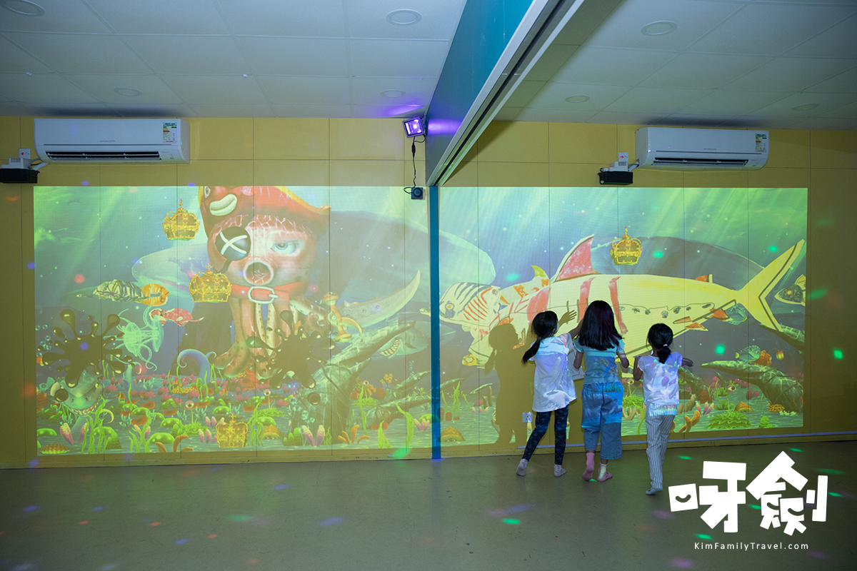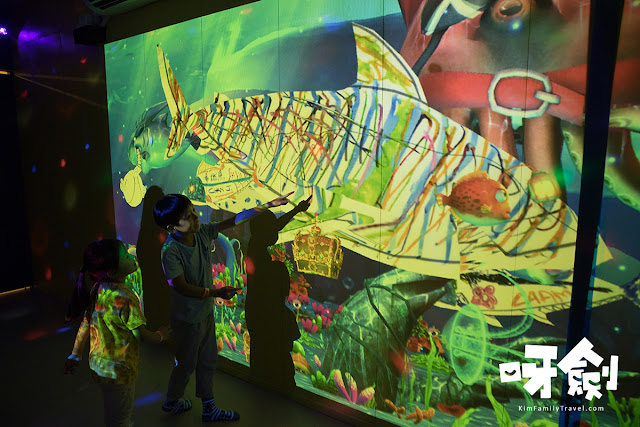 小朋友把圖畫掃描入屏幕裡都追着自己的魚看。