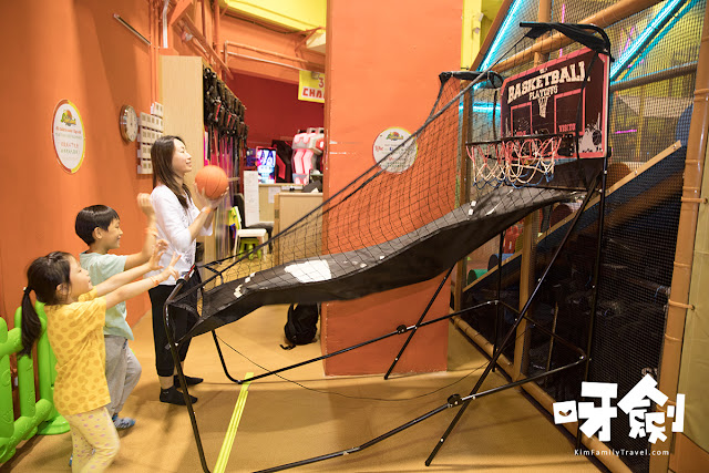 妹妹還是未夠高,次次都投不中籃,偉大的媽咪讓她騎膊馬去射籃,辛苦了媽媽喔!