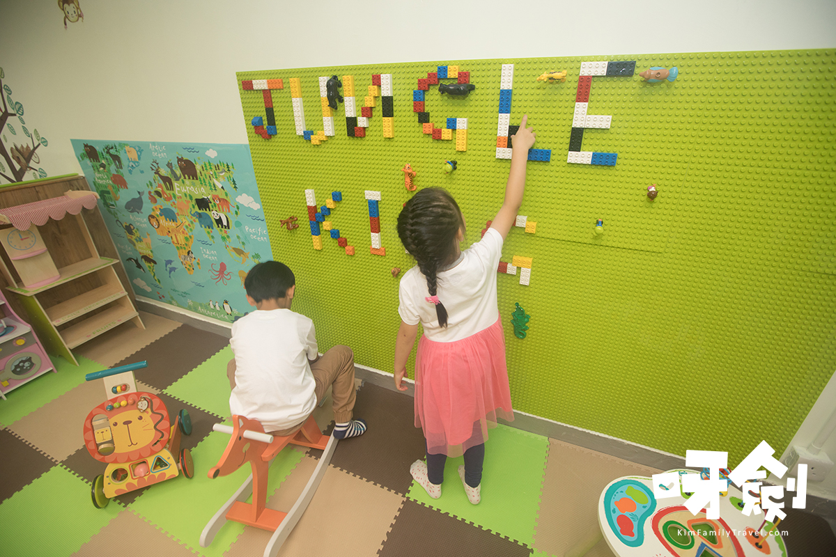 LEGO牆當然可以讓小朋友發揮創意喔,而且動物玩具原來也是LEGO來的,可以把它們砌上牆上。