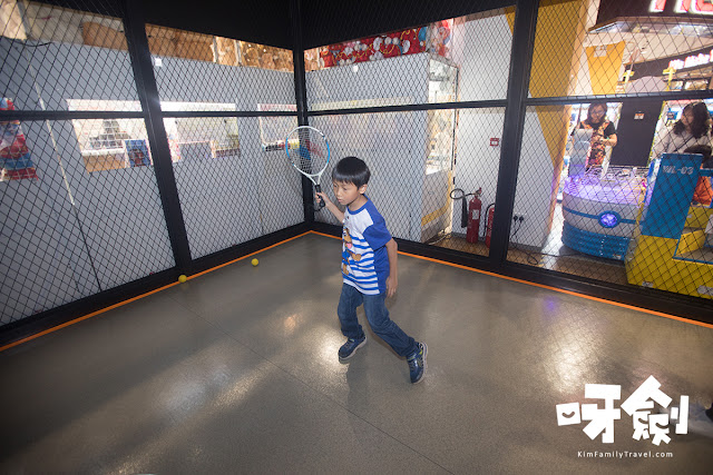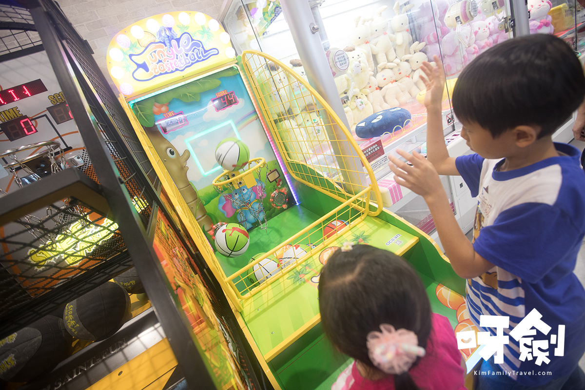 這裡還有小型的籃球機,以芊芊的高度,也可輕鬆投籃。