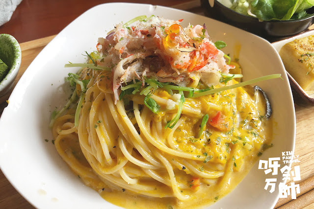 我點了兩個意粉餐「蟹肉南瓜忌廉芝士」及「卡邦尼」。