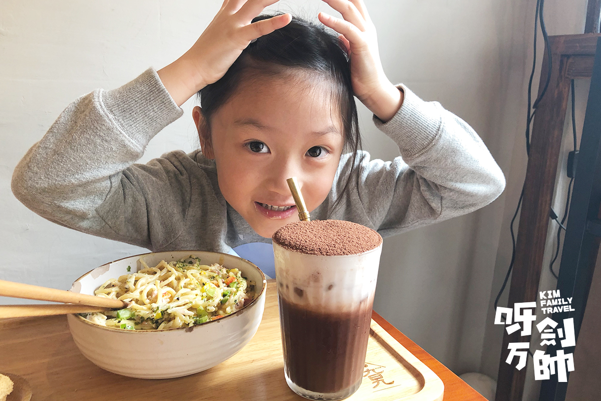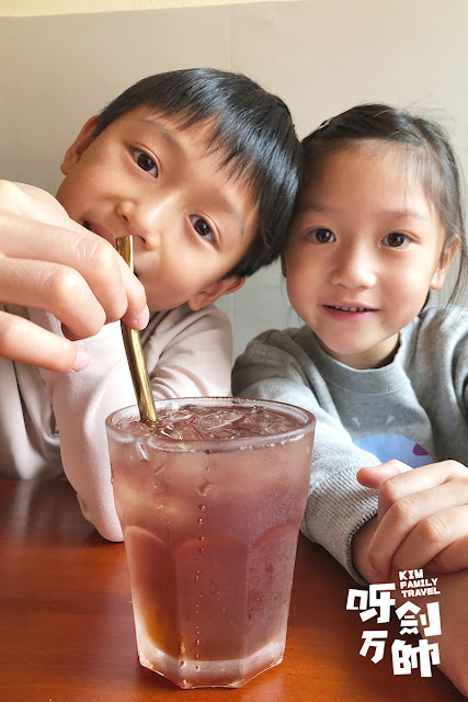 當然要點一杯適合他們倆的飲料吧!又是凍朱古力,想不到這杯朱古力也很美喔!而他倆還不停地喝,一直說很好喝很好喝。