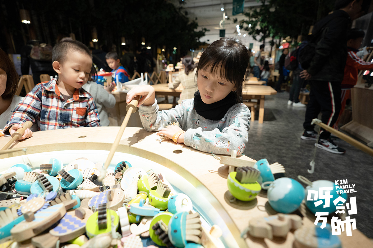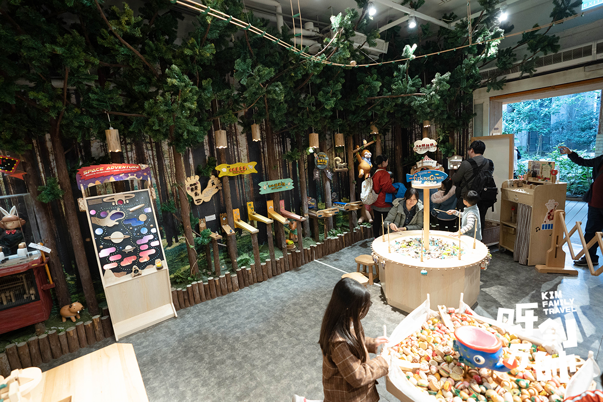 店內三區貫穿全店,順序為木育遊戲區、商品販售區及手作DIY體驗和輕食服務區。