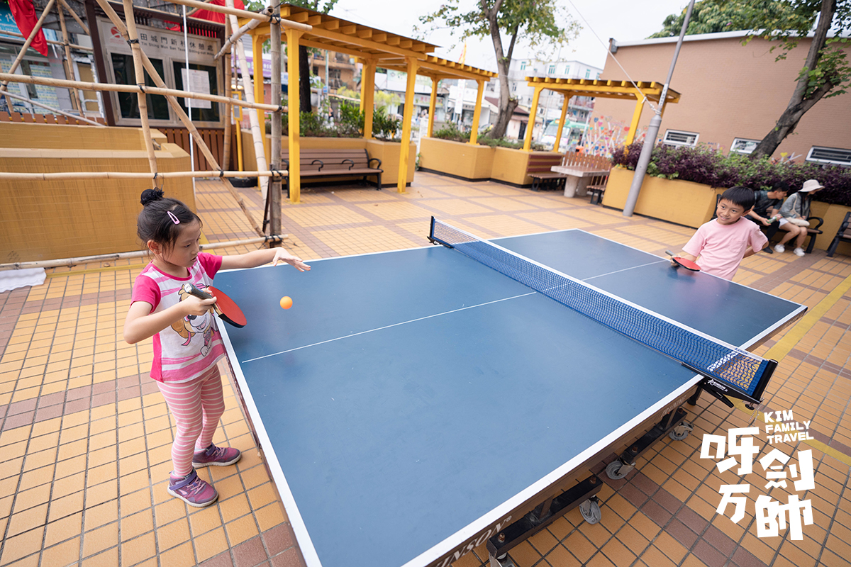 他倆看見外面有一張大乒乓波枱,就即刻同職員哥哥借了球拍及乒乓波,一齊磋番幾下波。
