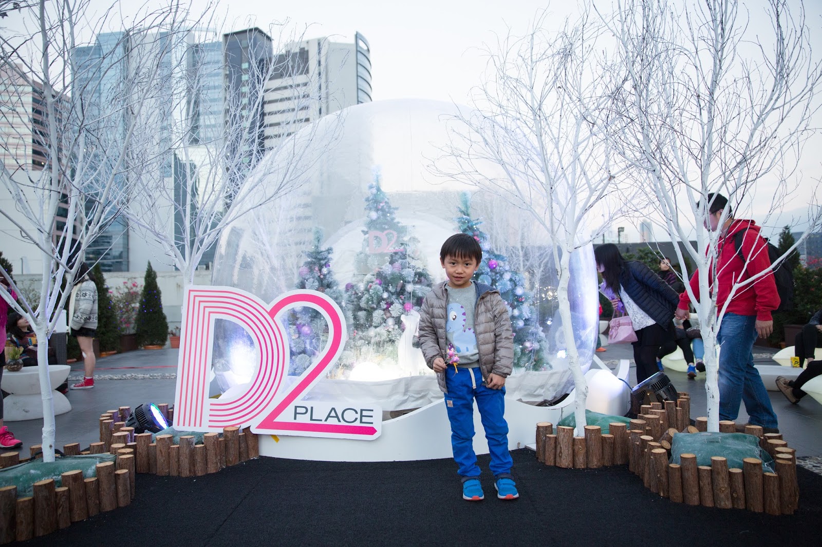 從裝置後面睇個D2 Place招牌Foam board居然咁求其....