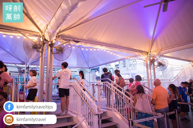我哋落到船見到好大好靚既摩天輪! 撞啱今日天氣好好, 嚟到時差唔多黃昏入夜, 個天呈現紫藍色! 真係好靚