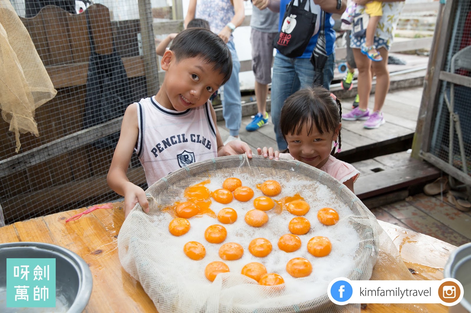 最後每人有兩個咸蛋做禮物,佢哋好直接就擺上眼晴扮咸蛋超人啦....