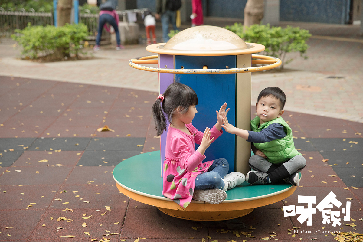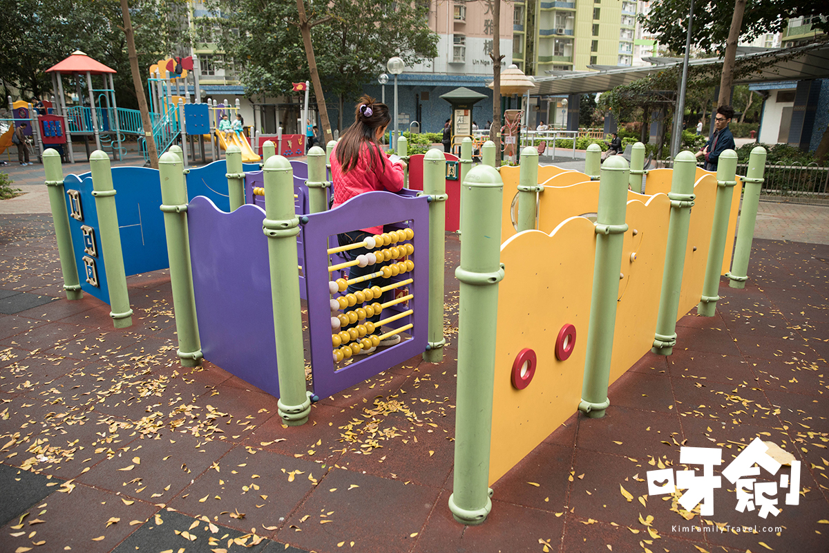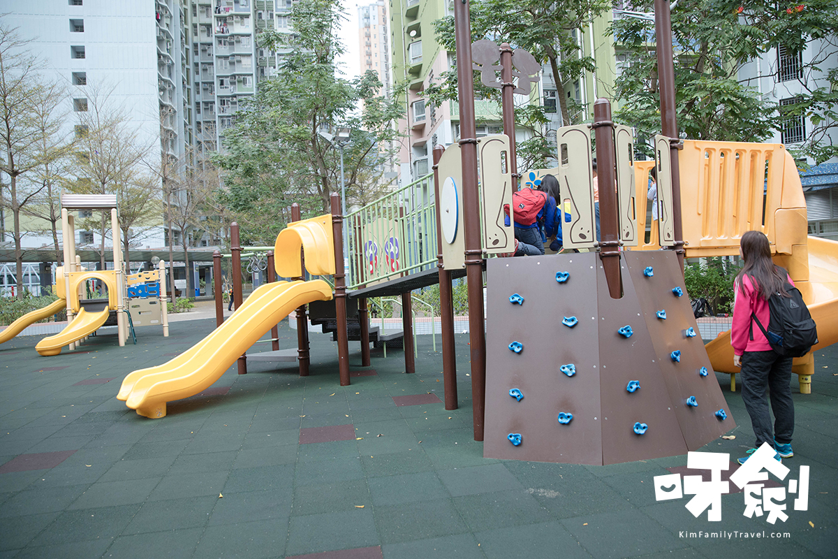 第一個主題遊樂場係以森林為題,設施上都特別多係攀爬式,好似爬山石及Monkey Bar等。整個設計都以啡及綠色為主,模擬樹木的特色!