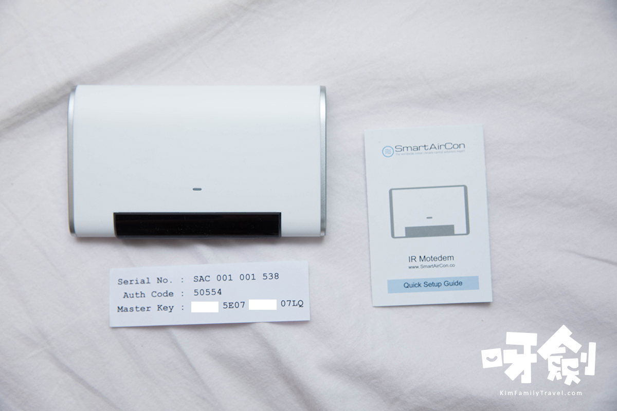 盒內除了SmartAirCon裝置外,仲有本簡易安裝說明書同埋一張印有Serial No., Auth Code, Master Key的紙條,一陣安裝時侯就需要用到,千祈唔好唔見咗!