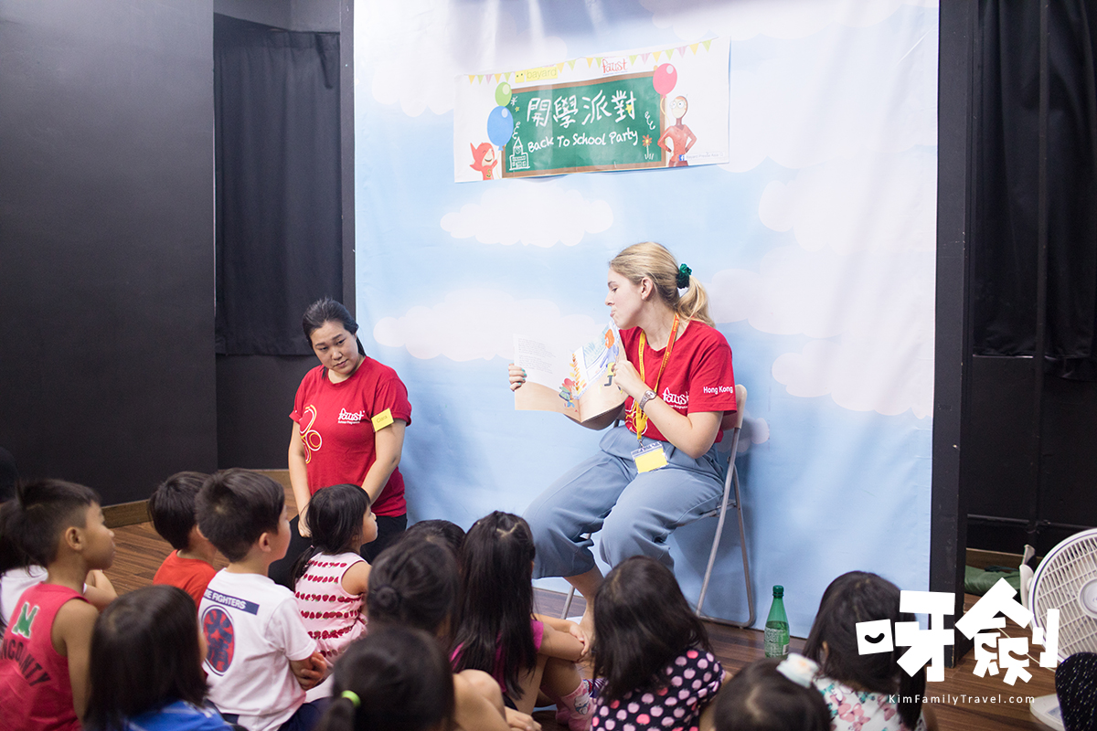 終於到講故事時間,外籍導師拎起芥子園的Story Box同各位小朋友分享故事。正好最新這期故事就是講「開學日」- "ELLY GOES TO SCHOOL"