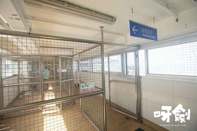 去到探訪貓狗的地方,這個鐵籠原來係每朝當清潔的時侯,貓狗都要到呢度暫時活動,姐姐話呢度係佢哋嘅操場,要喺度做早操。哈~