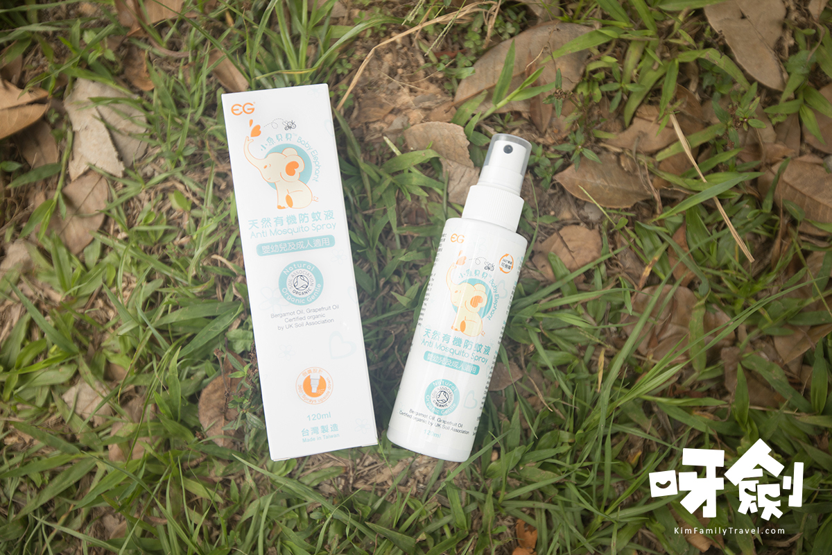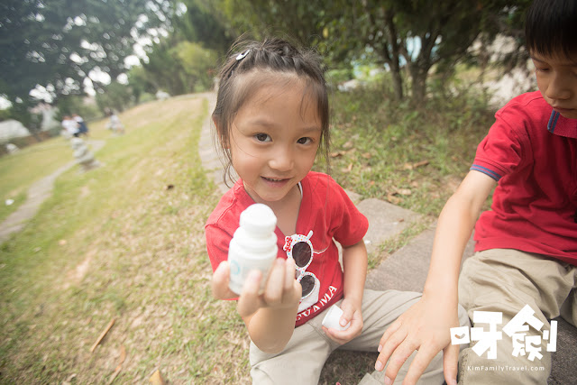 哥哥先幫妹妹噴過防蚊噴霧,記住要先搖勻才噴。