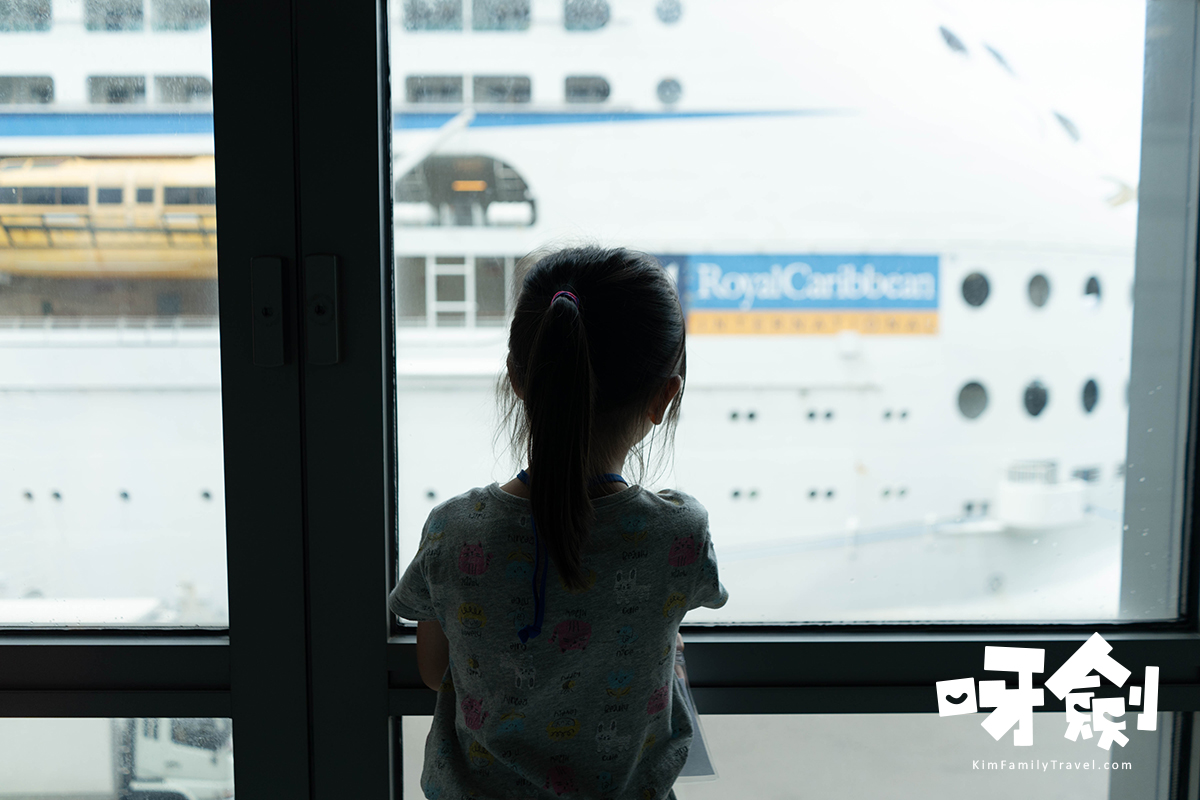 我哋到郵輪碼頭隔住塊玻璃望住首「海洋航行者號」,得哥哥一個好失望咁話冇得上船...嗚