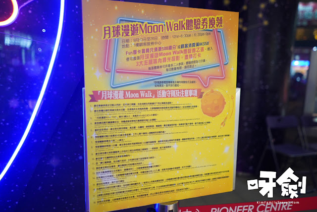 只要於商場消費滿$50,就可以換領月球漫遊Moon Walk體驗券乙張,每張體驗券可供最多二人參與,體驗時間為15分鐘,每日數量有限,換完即止。