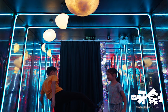 第一個主題區「星際歷奇」,利用了鏡面無限反射效果,搭配特效燈光技術,真係超美。